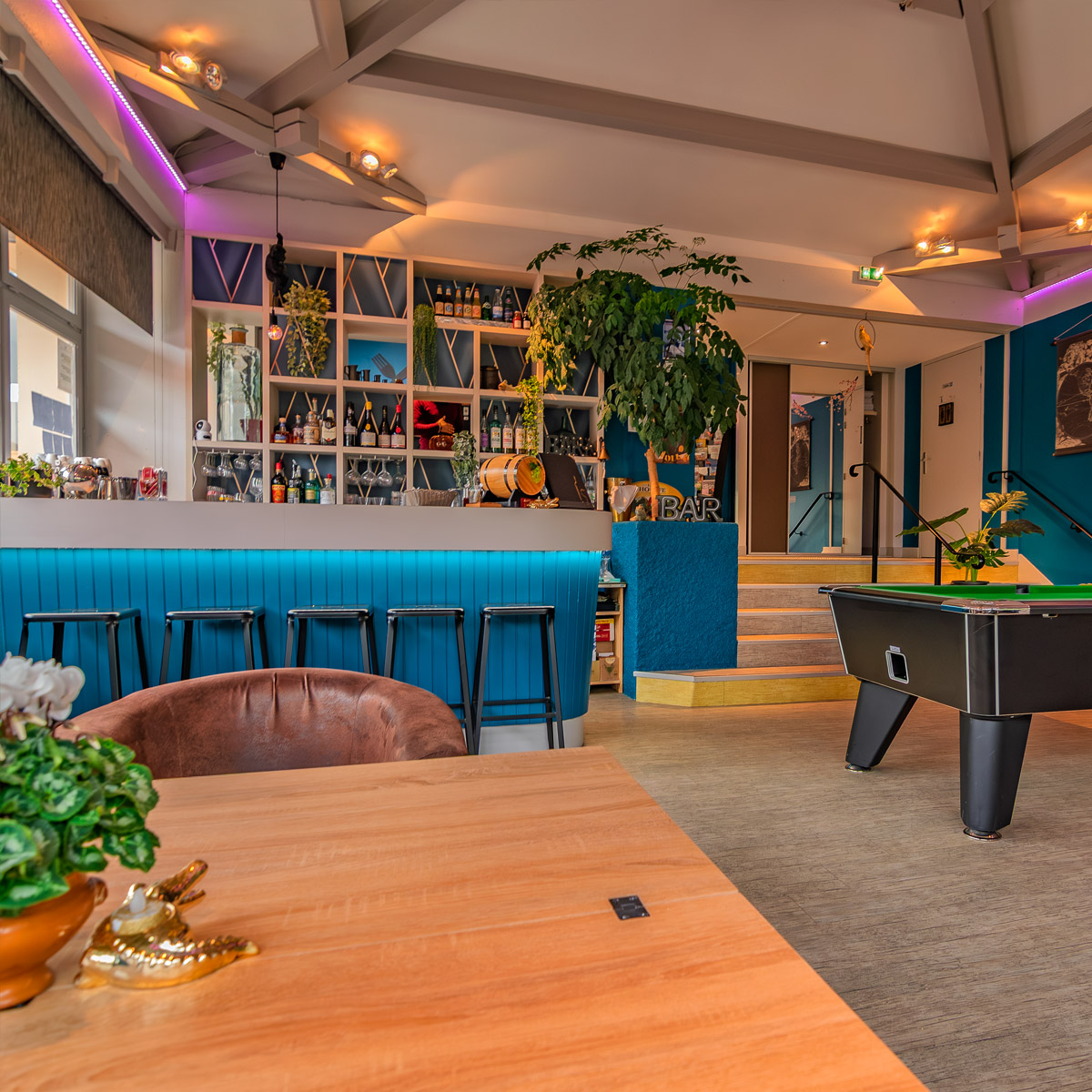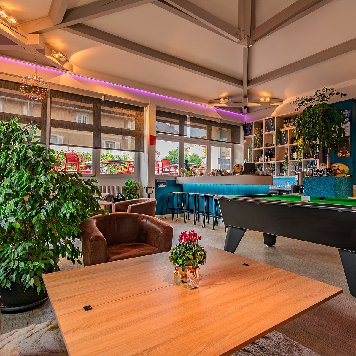 Détendez-vous avec un verre, dégustez nos tapas, et profitez de ces instants autour d’un billard. Notre restaurant est également ouvert le soir, vous pouvez y déguster des choix de viandes, ainsi qu’une option poisson et végétarienne. renseignez-vous à l’accueil